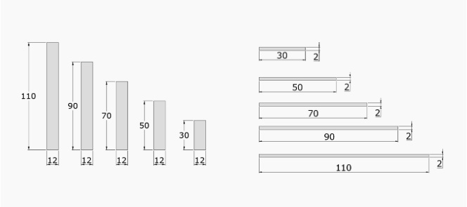 | MODEL | Inner Height (mm) | Inner Lenght (mm) | Outter Height (mm) | Outter Lenght (mm) | Bending Radius | Weight Kg/Mt |