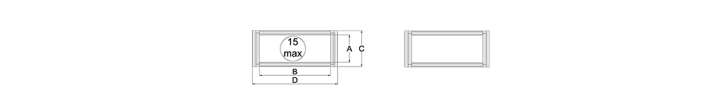 | MODEL | Inner Height (mm) | Inner Lenght (mm) | Outter Height (mm) | Outter Lenght (mm) | Bending Radius | Weight Kg/Mt |