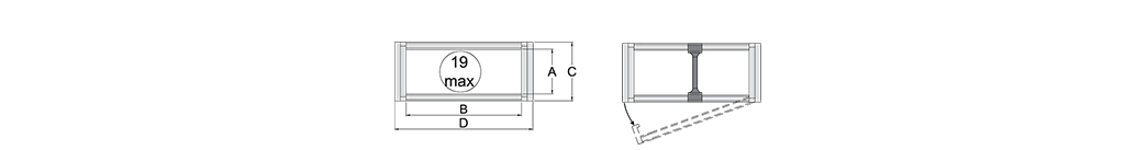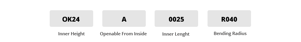 | MODEL | Inner Height (mm) | Inner Lenght (mm) | Outter Height (mm) | Outter Lenght (mm) | Bending Radius | Weight Kg/Mt |