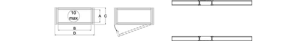 | MODEL | Inner Height (mm) | Inner Lenght (mm) | Outter Height (mm) | Outter Lenght (mm) | Bending Radius | Weight Kg/Mt |