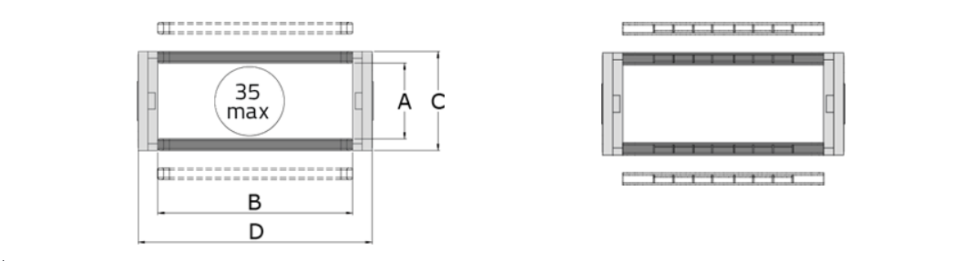 | MODEL | Inner Height (mm) | Inner Lenght (mm) | Outter Height (mm) | Outter Lenght (mm) | Bending Radius | Weight Kg/Mt |