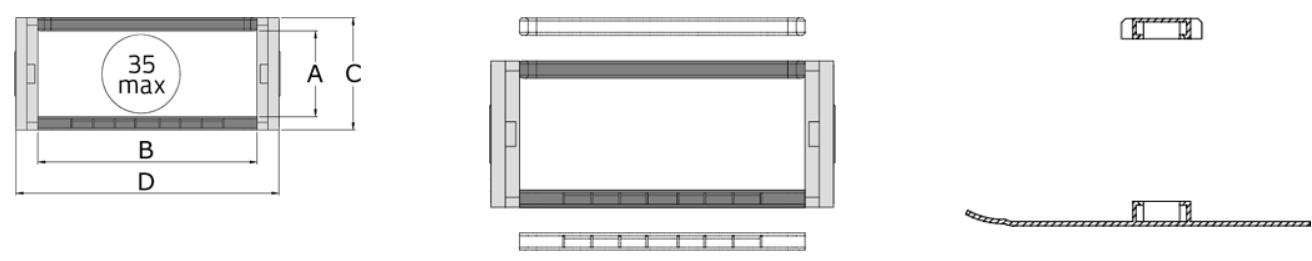 | MODEL | Inner Height (mm) | Inner Lenght (mm) | Outter Height (mm) | Outter Lenght (mm) | Bending Radius | Weight Kg/Mt |