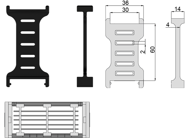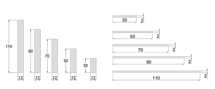 | MODEL | İç Yükseklik (mm) | İç Genişlik (mm) | Dış Yükseklik (mm) | Dış Genişlik (mm) | Kıvrılma Yarıçapı | Ağırlık Kg/Mtt |