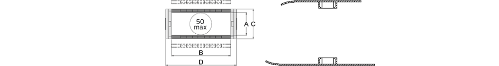 | MODEL | İç Yükseklik (mm) | İç Genişlik (mm) | Dış Yükseklik (mm) | Dış Genişlik (mm) | Kıvrılma Yarıçapı | Ağırlık Kg/Mtt |