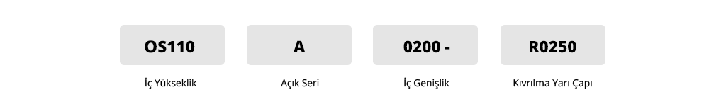 | Kıvrılma Yarıçapı | 250 | 300 | 350 | 400 | 500 | 600 | 800 | 1000 |